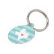 Let your furry friend show some home state pride with this cute Texas pet ID tag. Design features a white silhouette map of the state of Texas with a pink heart inside, on a tone on tone turquoise stripe background. Add your pet's name and contact information to the back in white lettering on an aqua background.