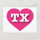This postcard features a vibrant purple heart containing the bold, white, upper case letters TX, the official abbreviation for Texas, the Lone Star state. The reverse side of the postcard is blank, awaiting your personalised text or handwritten sentiments.