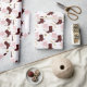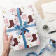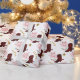 A red and black buffalo print boot silhouette combines with red script that says "Jingle all the way" and a gold star to make a fun pattern on this Holiday wrapping paper. Between the repeated images is gold text that says "TEXAS". Everything is placed on a white background. A fun way to wrap your gifts in Texas style!