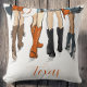 A pillow with a fashion illustration print of ladies proudly representing their school in Texas, styled in burnt orange and dark grey with cowboy boots and hats! It perfectly captures that Southern spirit and school pride. Texas is in orange script on the bottom. Perfect for dorm rooms, bedrooms, birthdays, holiday gifts, or graduation gifts.