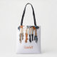 A fashion illustration on a tote of ladies proudly representing their school in Texas, styled in burnt orange and dark grey with cowboy boots and hats! It perfectly captures that Southern spirit and school pride. Personalise with a name on the front. Perfect for birthday, holiday, or graduation gifts.