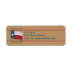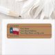 Show your love and pride of Texas everywhere with these return address labels on your mail or use for identification for books and other items. These labels feature the Texas Lone Star Flag with red border lines that go across the label. Navy blue tars are above and below the waving flag. Easy to customise with your name, address, city, state and zip code. Everyone will know where your heart lives - Texas and Texas proud.
