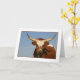 Photo card, Texas longhorn cow against blue sky, burnt orange trim with white matting around edges, customise it with your own text