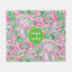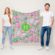 Texas Map Pink & Green Preppy Pattern Monogrammed Fleece Blanket