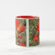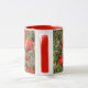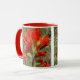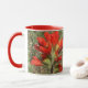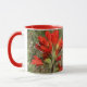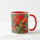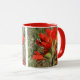 White and red 11 oz. combo mug with an image, on both sides, of a watercolor painting of Texas Paint Brush, an upright, hairy annual, perennial or biennial herb native to Texas with single erect stems and slender taproots. See matching candy jar, square ceramic tile and coasters. See the entire Flowers & Plants Mug collection in the HOME section.