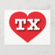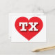 This postcard features a vibrant red heart containing the bold, white, upper case letters TX, the official abbreviation for Texas, the lone star state. The reverse side of the postcard is blank, awaiting your personalised text or handwritten sentiments.