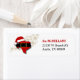The state of Texas is Santa's red suit and black belt on this cute Holiday return address label. Santa's hat sits on the panhandle. Behind the image is a spray of ornate gold snowflakes. Your custom text is in red and black at the right. Cute!