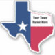 Customisable Texas shape sticker with TX flag design that you can add your own town name to. Use one of many fonts and sizes.