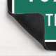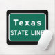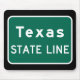 Green and white road sign for "Texas State Line" can be seen on Texas state highways and biways.