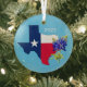 Two sided ornament featuring Downtown Dallas, and with the Texas state outline and flag colour logo plus bluebonnets.