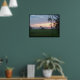 Photo print of a Texas sunset with barbedwire fence and oil well in foreground. Semi transparent border frames the photo.