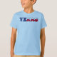 The t-shirt feels and looks great quality, a good thick cotton. It will be a little big for my son, but that means he will be able to wear it and not out grow it too soon. The print was as described on the order when personalised. True size, shape and colour T-shirt- thanks.