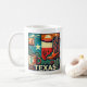 Celebrate the spirit of Texas with this vibrant ceramic mug featuring iconic elements like the Lone Star, cowboy boots, desert landscape, and the Texas state outline. Perfect for coffee, tea, or any beverage of your choice, this mug brings a touch of the Lone Star State to your everyday routine.