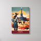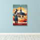 Experience the heart of Texas in this vibrant scene! A confident woman in Western attire stands before a grand building crowned with a dome and star, gazing over rolling plains where cattle graze. This captivating blend of iconic architecture and serene nature embodies the spirit of adventure and exploration. With bold colours reflecting a stunning sunset, this poster invites you to discover the rich landscapes and cultural heritage of the Lone Star State!