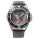 Watch, Stainless Steel Black Leather