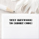 "TEXT (KEYWORD) TO (SHORT CODE)" Change KEYWORD and SHORT CODE to your own text messaging keyword and short code. Add any other slogan or text.
