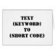 "TEXT (KEYWORD) TO (SHORT CODE)" Change KEYWORD and SHORT CODE to your own text messaging keyword and short code. Add any other slogan or text.