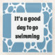 Cool blue pattern and the text: It's a good day to go swimming. To customise, click personalise and change the text to your liking.