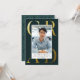Use our "Textbook" design to celebrate the graduate! This simple announcement card features a dark jungle green background and "grad" in gold serif capitals. There is a white photo frame showcasing a custom picture. The grad's name, alma mater, and class year appear below. Cards reverse to a geometric hexagonal pattern with two different shades of green. More color variations are available in our store. Use this template to make your own custom high school or university graduation announcements. Simply adjust the wording and change the photo in the picture insert. Check out our collections for more graduation ideas. Feel free to message me with any design questions (before ordering), I'll be happy to help.