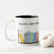 Texting on The Bookshelf black Two-Tone Coffee Mug