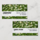 A business card template with an attractive photo/artwork background with details on a white band. Company details on one side personal details on the other. Ready to be customised with your details
