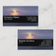 A business card template with an attractive photo background (which can also be changed). Details on a black band. Company details and address on the front with name and other contact details on the back. Ready to be customised with your details.