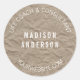 This simple minimalist textured paper sticker design is both modern and rustic, with the crisp white lettering on the simulated crinkled kraft paper. Personalise all three areas of lettering using the text templates and create the perfect custom round sticker to dress up your envelopes, invoices and more.
