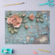Textured Coral Roses on Distressed Teal Wood Tissue Paper