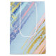 Pink and blue textured background, painted with large brush strokes, decorated with gold foil. Grunge Texture.