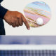Pink and blue textured background, painted with large brush strokes, decorated with gold foil. Grunge Texture.