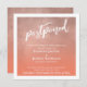 This design features a modern, handwritten script font used to create a graphic depicting the word "postponed", large and bold. A subtle watercolor overlay was placed at the top, adding texture and creating a gradient, ombre effect with your choice background colour. For an added bold effect, I've placed a thick white border around the edges of the front of the card. Use the template fields to add your personal details and make this unique, modern design your own. The background can be changed to any colour you prefer. Please reach out with any special requests or for customising assistance. // 100 //