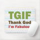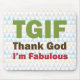 Featuring the text "TGIF Thank God I'm Fabulous" in bright colours.