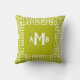 Thai Lime Reverse Greek Key Border Monogram Cushion