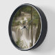 I received this as a birthday gift from my husband to replace a clock that had broken. It was perfect, pictures of my sweet family to see at every hour of the day. The size of the pictures looks nice for the size of the clock and I love looking at it! The only downside is there is no cover for the battery on the back, which makes me nervous having little kids running around the house, but an easy fix with some tape. The printing turned out clear, considering they were all cell phone pictures. Some of them look slightly grainy upon getting close up. But so nice overall!