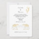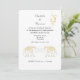 Stylish destination wedding invitation in gold and white tones for couples getting married abroad in Thailand. With motif inspired by buddhism symbols and lucky white Thai elephants. A very pretty design, easy to customise with your wedding details.