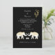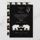 Stylish destination wedding invitation in black, gold and white for couples getting married abroad in Thailand. With motif inspired by buddhism symbols and lucky white Thai elephants. A very pretty design, easy to customise with your wedding details.