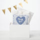 The over-the-hill, numerical design on the front has a blue and white random number pattern with the blue number 100 repeated in varied sizes and angles. There is a blue puffy heart shape in the centre, front with "Thank you.” The lower front has room for, "Thank you for coming to my birthday party. A fun idea for party favours for your favourite centenarian's 100th birthday party, and for all occasions or centennial celebrations where you are featuring the number one hundred; just change the text to match the event.