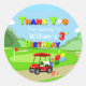 Thank You 3rd Birthday Red Golf Cart Boy's Classic Round Sticker