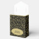 Easily personalise the text on this gold and black 65th birthday party theme with the text templates supplied. This design in the background is a gold and black pattern of the number 65 repeated in varied sizes and angles in an all-over, typography print. There is a gold flap on the top and an oval plaque in the centre front for your text. Use the easy templates to add your own words, name, initial, or monogram. A great idea for party favours for your 65th birthday party, or use for any other event, where you celebrate the number 65, just by changing the text.