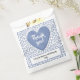 The over-the-hill, numerical design on the front has a blue and white random number pattern with the blue milestone number 80 repeated in varied sizes and angles. There is a blue puffy heart shape in the centre, front with "Thank you.” The lower front has room for, "Thank you for coming to my birthday party. A fun idea for party favours for your 80th birthday party, and for all occasions or celebrations where you are featuring the number eighty; just change the text to match the event.