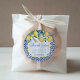 Thank you stickers for any event (shown here for a Baby Shower but all of the text fields are customisable). The design features watercolor lemons against a background of a vintage blue and white azulejo tile design.