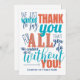 Say thanks in style. This fabulous typography design features a blue, turquoise and rust coloured thank you message. A wonderful flat card to show your appreciation. Would be perfect for employee staff appreciation or business customers.