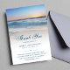 Nature sympathy heavenly thank you funeral card with white overlay and a beach seascape, water scene.