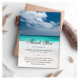 Nature sympathy heavenly blue grey thank you grief funeral card with an ocean beach seaside photograph.