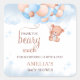 A sweet baby shower sticker featuring an adorable teddy bear hanging from a cluster of soft blue and blush balloons with dreamy cloud and star accents. The playful “Thank You Beary Much” message makes it perfect for sealing favor bags, decorating thank you gifts, or adding a polished finishing touch to party packaging. This watercolor design is a lovely match for a boy baby shower, teddy bear theme, or soft pastel celebration.