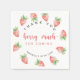 Cute baby shower invitation card featuring watercolor illustration of strawberries. The text says "berry much for coming" Matching items available.