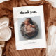 Simple and minimalistic birth announcement card featuring text at the top that says "thank you" in bold font.