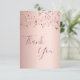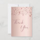 A rose gold faux metallic looking background. With rose gold, copper coloured dripping sparkling stars. On front large dark rose gold coloured hand lettered script and the text: Thank You.