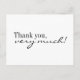 Black and White Thank you Postcard. White card with black contemporary font and calligraphy script.