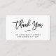 This modern and stylish, black and white retail or small business thank you enclosure card features trendy, black handwritten script typography. Add your business or company name and website or other info for a thank you your corporate customers will want to show off. You can add a discount code and your social media username with the icon on the back.